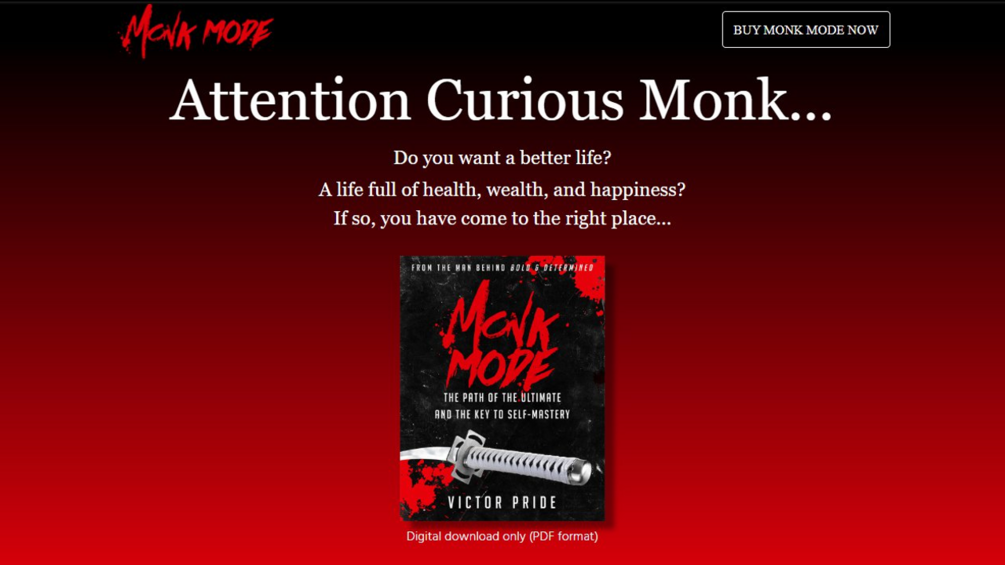 Monk Mode is designed to enlighten you and wake up your eyes to reality and to wake your soul up to achievement.